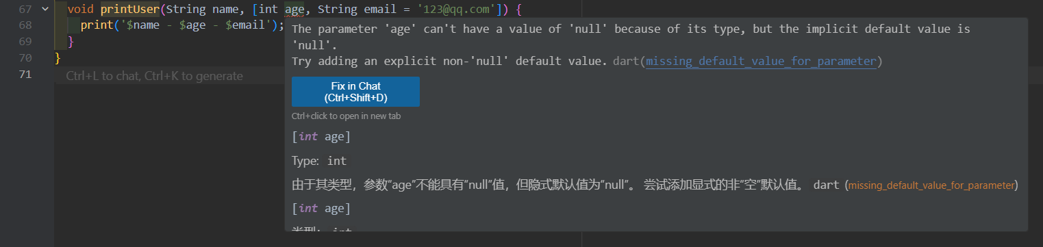 void printUser(String name, [int? age, String email = '123@qq.com']) {
